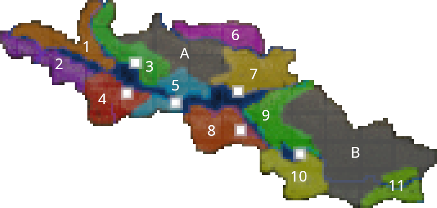 - /ʈ͡ʂɯkɛtiɥ/ (Chiefdom) - Taking the name from the tree growing along the lake shores, the ʈ͡ʂɯkɛtiɥ in their forest are among the smaller clans, living mostly off fishing from the lake. The population is centered almost entirely in the settlement on the lake, and livestock is limited, though a significant cluster of smaller settlements do exist on the eastern bank of the river as seen.