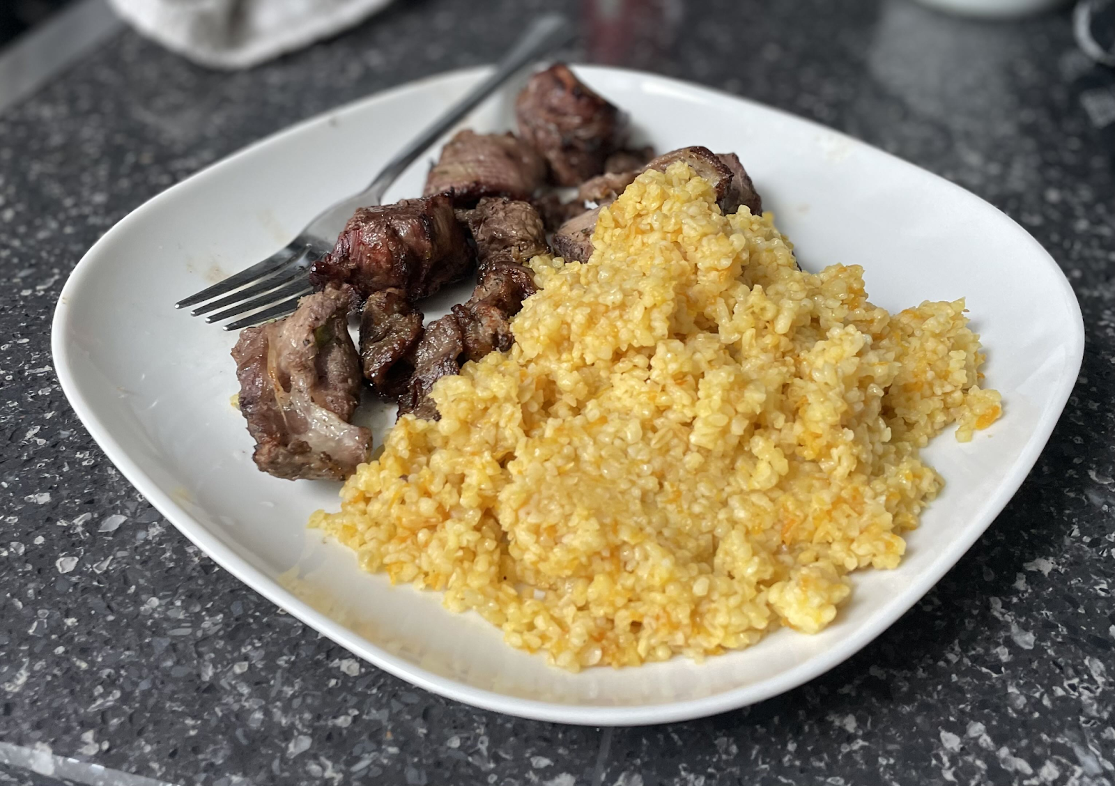 The lamb or mutton is placed in a jar or amphora. A curing liquid is prepared consisting of salt, honey, dill, garlic, and tarragon. This liquid is first brought to a boil, whereupon it is poured into the jar containing the lamb, which is stirred to expose the surface of the meat for curing. The container is sealed and left in a cool place to cure for a few days, but it must be inspected for signs of rot, and shaken occasionally. The meat is removed, rinsed, and cooked with a pan, after which it is served with a wheat flatbread and a garlic-yogurt.