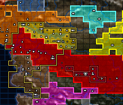 The Tim Clan (light blue) in 1860 KS, at their maximum extent, with the 1st Dynasty of the Wajahe shown with a Yellow border, to their southwest. Their decline would follow soon after.